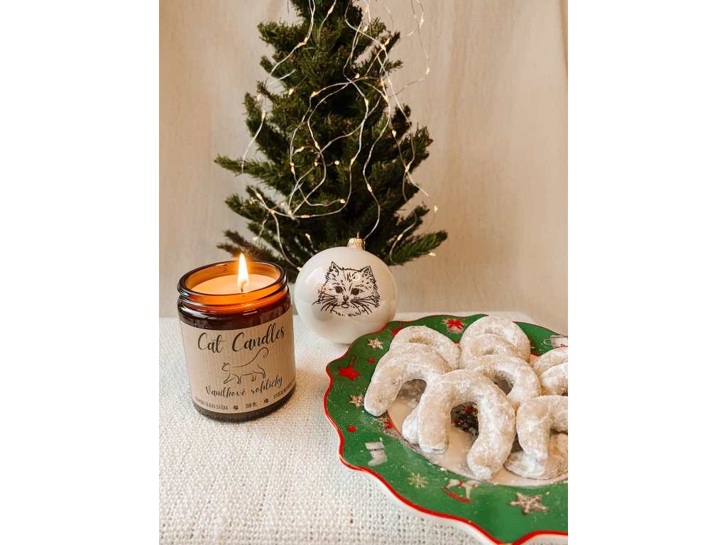 Vonná svíčka připomínající vůni čerstvě upečených vanilkových rohlíčků.